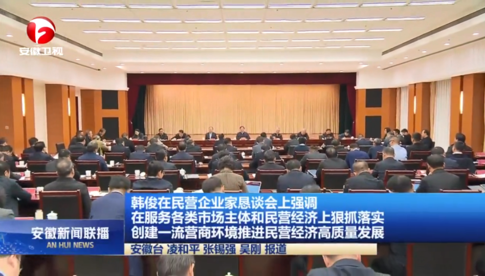 歲暮迎春之際,安徽省委、省政府在合肥召開民營企業(yè)家懇談會,省委書記韓俊出席并講話。他強調(diào),要深入學(xué)習(xí)貫徹習(xí)近平總書記關(guān)于民營經(jīng)濟發(fā)展的重要論述,全面落實中央經(jīng)濟工作會議精神和省委十一屆六次全會、省委經(jīng)濟工作會議部署要求,進一步完善民營企業(yè)家懇談會等制度,推動市縣建立常態(tài)化為企服務(wù)機制,加快創(chuàng)建一流營商環(huán)境,全力推進民營經(jīng)濟高質(zhì)量發(fā)展。省委副書記、省長王清憲主持會議。省政協(xié)主席唐良智,省領(lǐng)導(dǎo)張西明、虞愛華、張韻聲、費高云、王翠鳳、任清華出席會議。