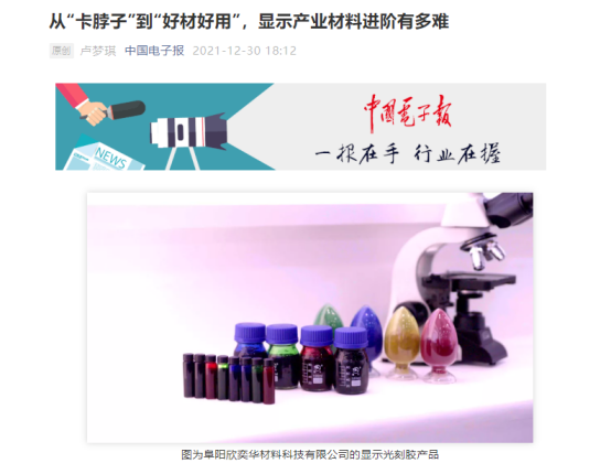 元旦前夕,電子信息產(chǎn)業(yè)核心媒體《中國電子報(bào)》跟進(jìn)報(bào)道了中國顯示產(chǎn)業(yè)材料發(fā)展進(jìn)程,并特別介紹了行業(yè)標(biāo)桿型企業(yè)阜陽欣奕華材料科技有限公司(以下簡稱“欣奕華材料”)在實(shí)現(xiàn)關(guān)鍵材料國產(chǎn)自主可控方面